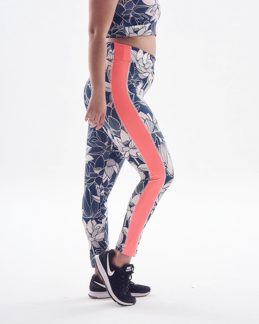 El calce está pensado para ser tiro alto, por arriba del ombligo, para agacharte sin que se vea nada y saltar sin que se caiga. Tiene elástico angosto por dentro de la cintura para un mejor agarre.