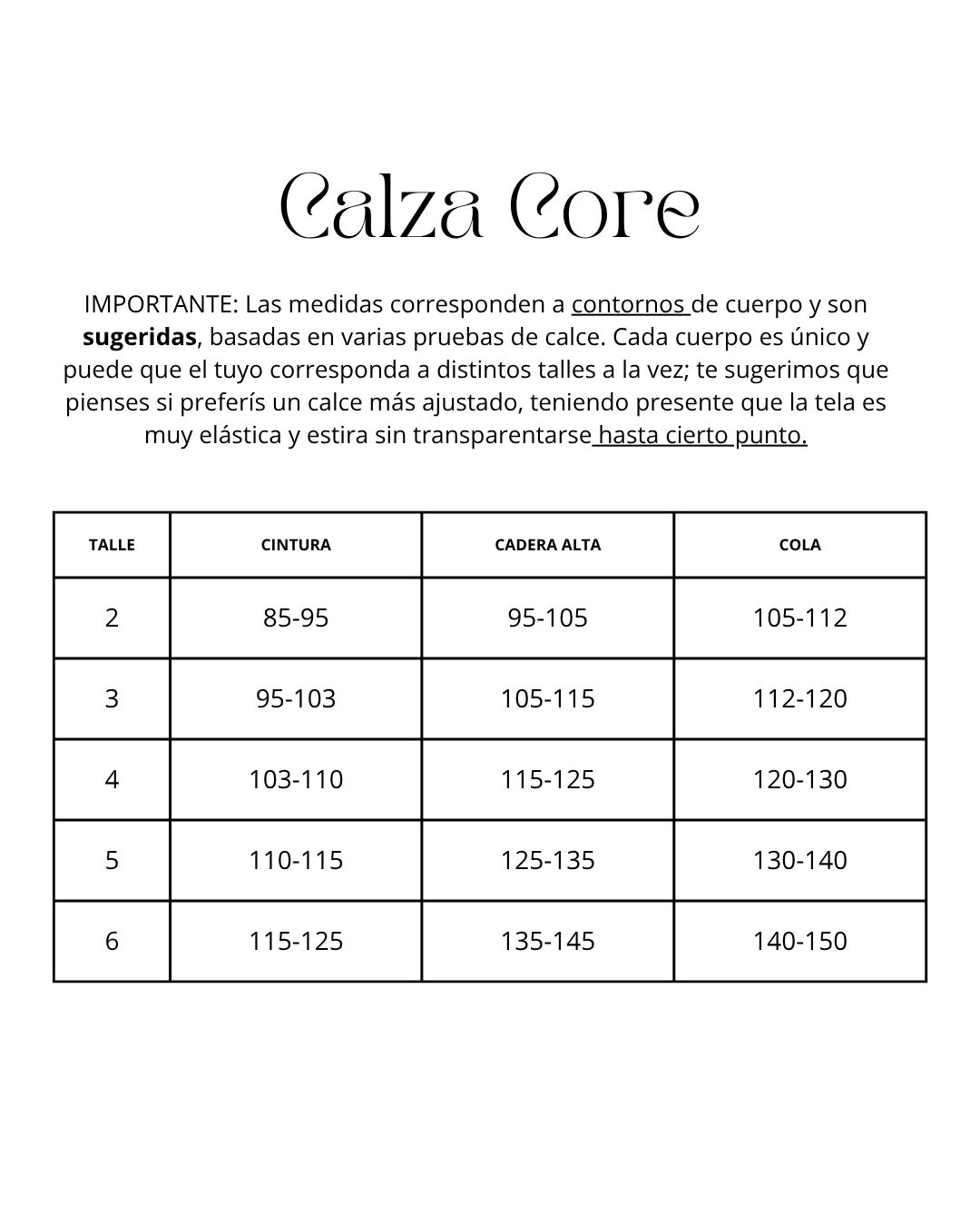 Tiro alto, cintura ancha y doble, con elástico interno en su tope superior.