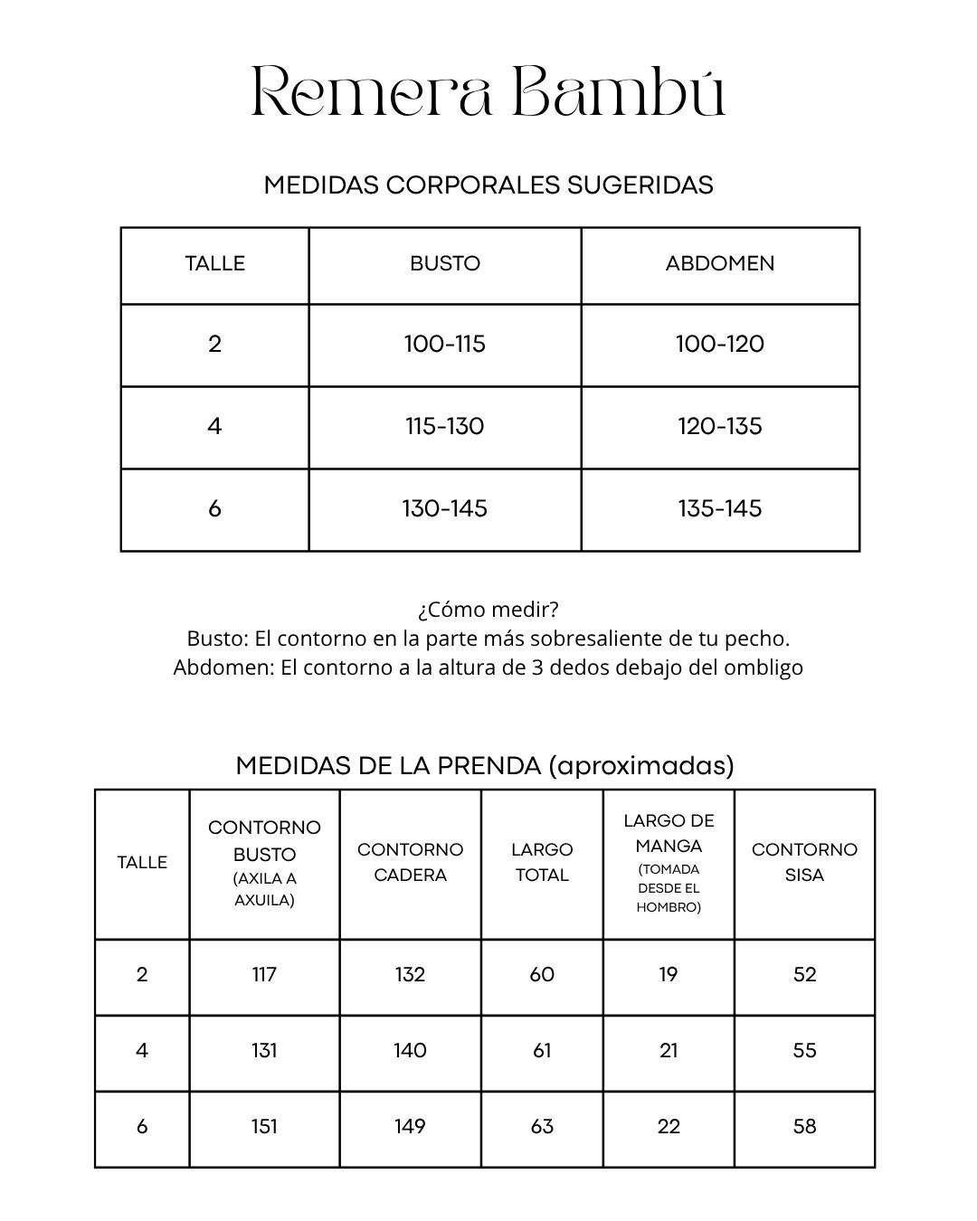 Remera de calce evasé (ensancha hacia la cadera) de largo regular, con manga amplia y escote redondo. Es una remera más corta que el resto de modelos de la colección, ideal si sos de poner la remera dentro del pantalón o simplemente te sentís más cómoda con prendas no tan largas.