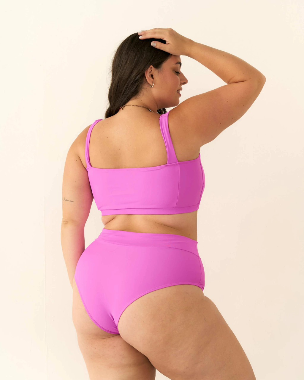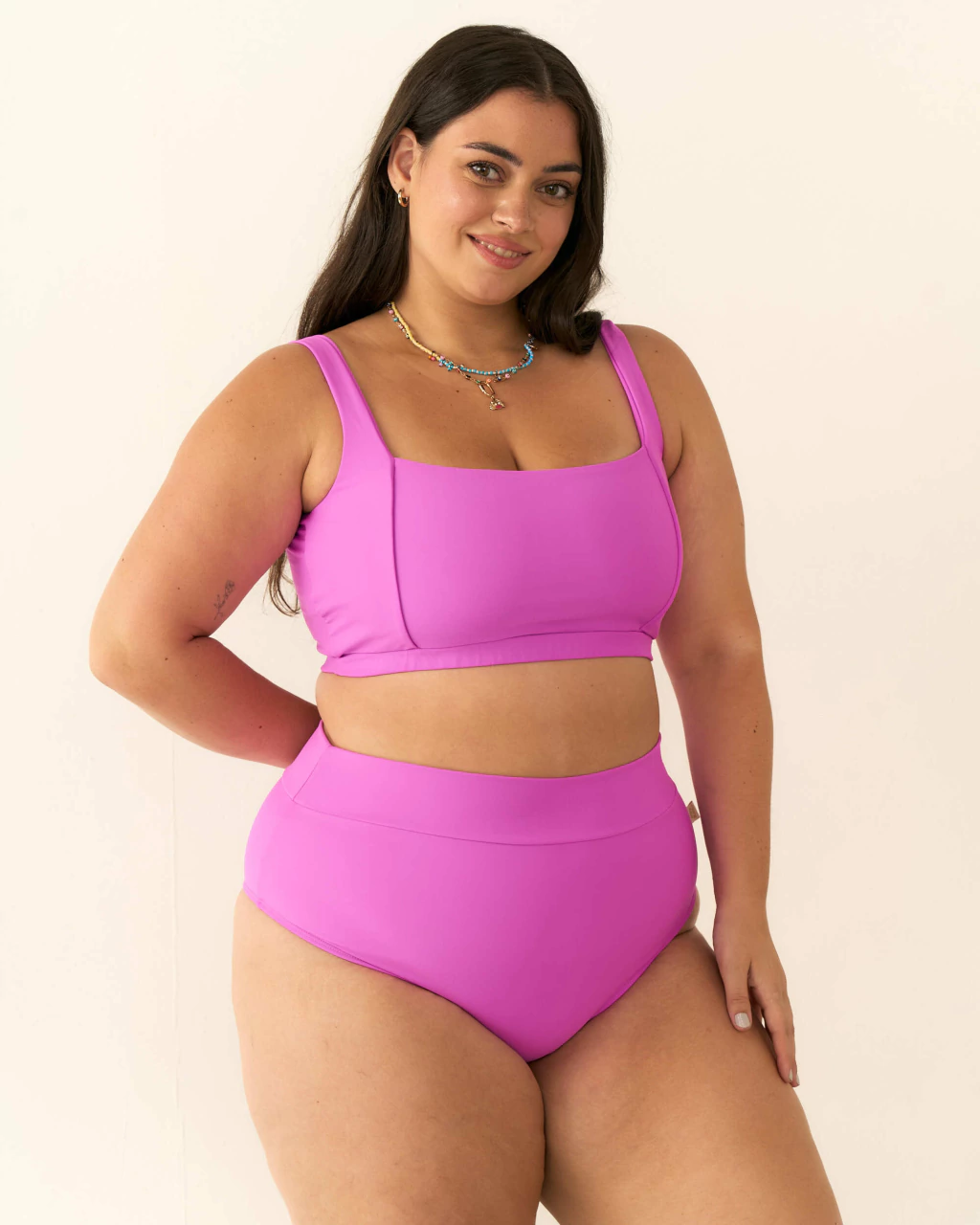 ¡Este top es el caballito de batalla de todas nuestras clientas! No hay persona que se lo ponga y no sienta automáticamente el placer de estar contenida, cómoda y segura en una bikini. Está realizado en doble lycra delantera y tiene muchos elásticos internos para que calce fenomenal y no se mueva de lugar. En bajobusto, tenés un elástico anchito, y en las costuras delanteras también. Además de dar forma, te asegura que sea la comodidad absoluta. Los breteles son anchos con elásticos embolsados, ayuda a que no moleste sobre los hombros. Es el tipo de top que te puede acompañar tranquilamente en una salida de noche. No se me ocurren más razones para amarlo.